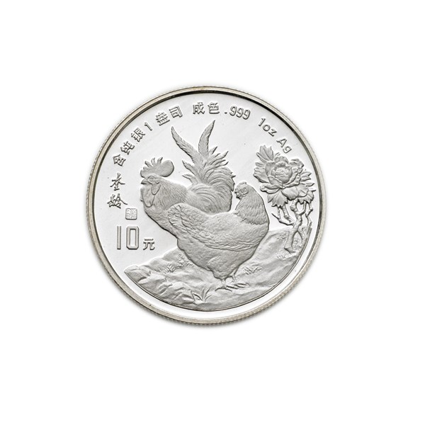 CINA Repubblica Popolare. 10 yuan 1993/Galli. KM 510. AG. PROOF. In astuccio.