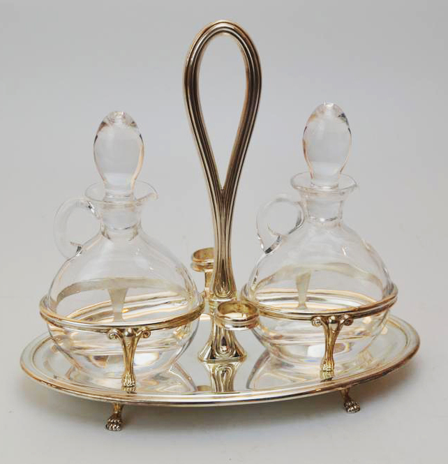 OLIERA IN VETRO E ARGENTO 800 realizzata su una base ovale cm 23x13x20 g...