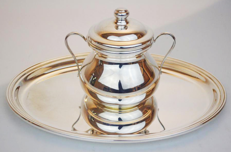 composto da vassoio ovale firma GREGGIO di cm 24x17 e zuccheriera biansata