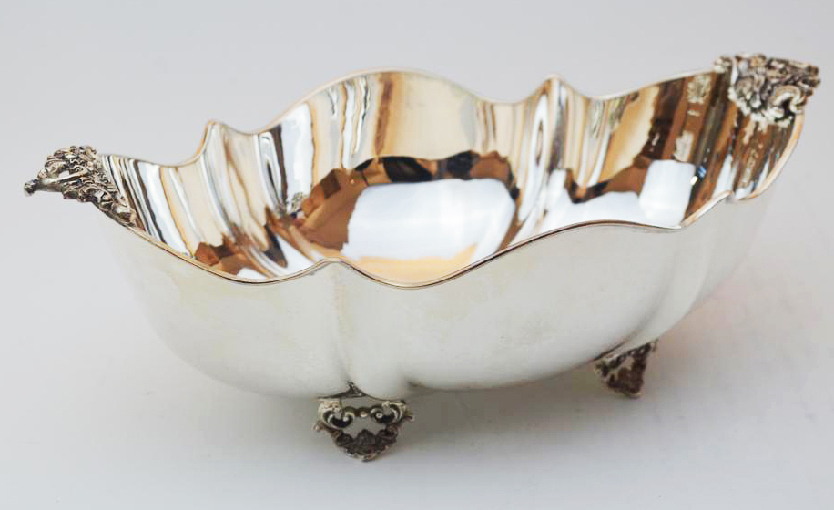 di forma ovale con profili ondulati, sbalzato e cesellato