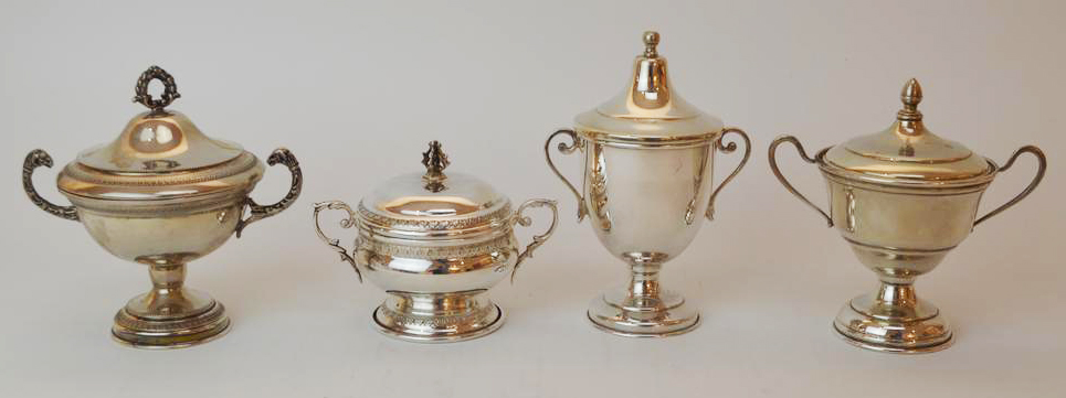 formato da quattro zuccheriere biansate decorate a sbalzo e cesello
