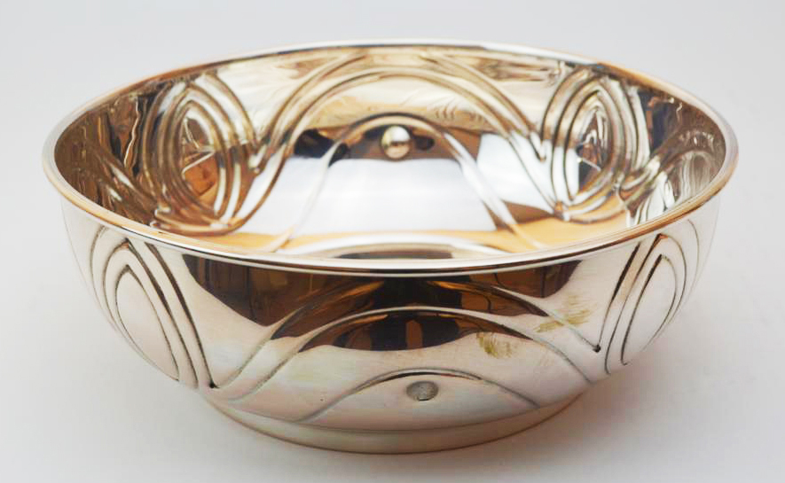 Lotto 40 | CIOTOLA IN ARGENTO 800 di forma rotonda, decorata da linee ondulate a sbalzo...