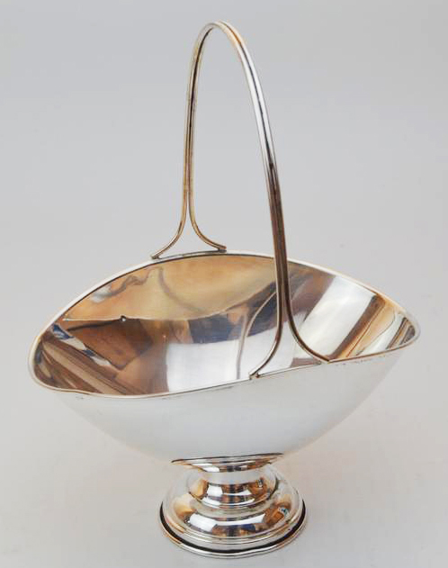 Lotto 53 | CESTINO IN ARGENTO 800 di forma ovale con bordo nervato alto manico cm...
