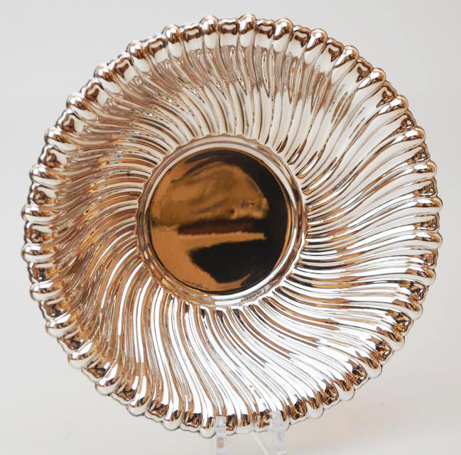 PIATTO IN ARGENTO 800 realizzato a sbalzo con un corpo nervato a torchon cm...