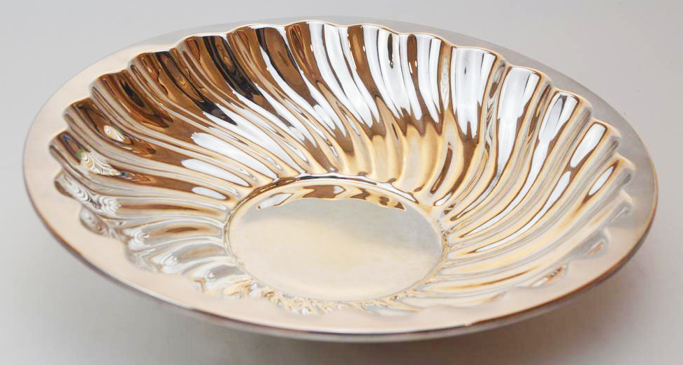 PIATTO IN ARGENTO 800 di forma rotonda realizzaro a sbalzo con larghe...