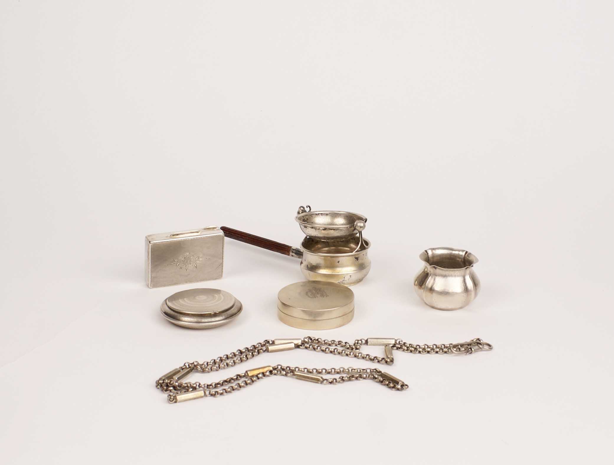 LOTTO IN ARGENTO manifattura italiana Composto da sei oggetti in argento, fogge e misure diverse Peso 300 gr.