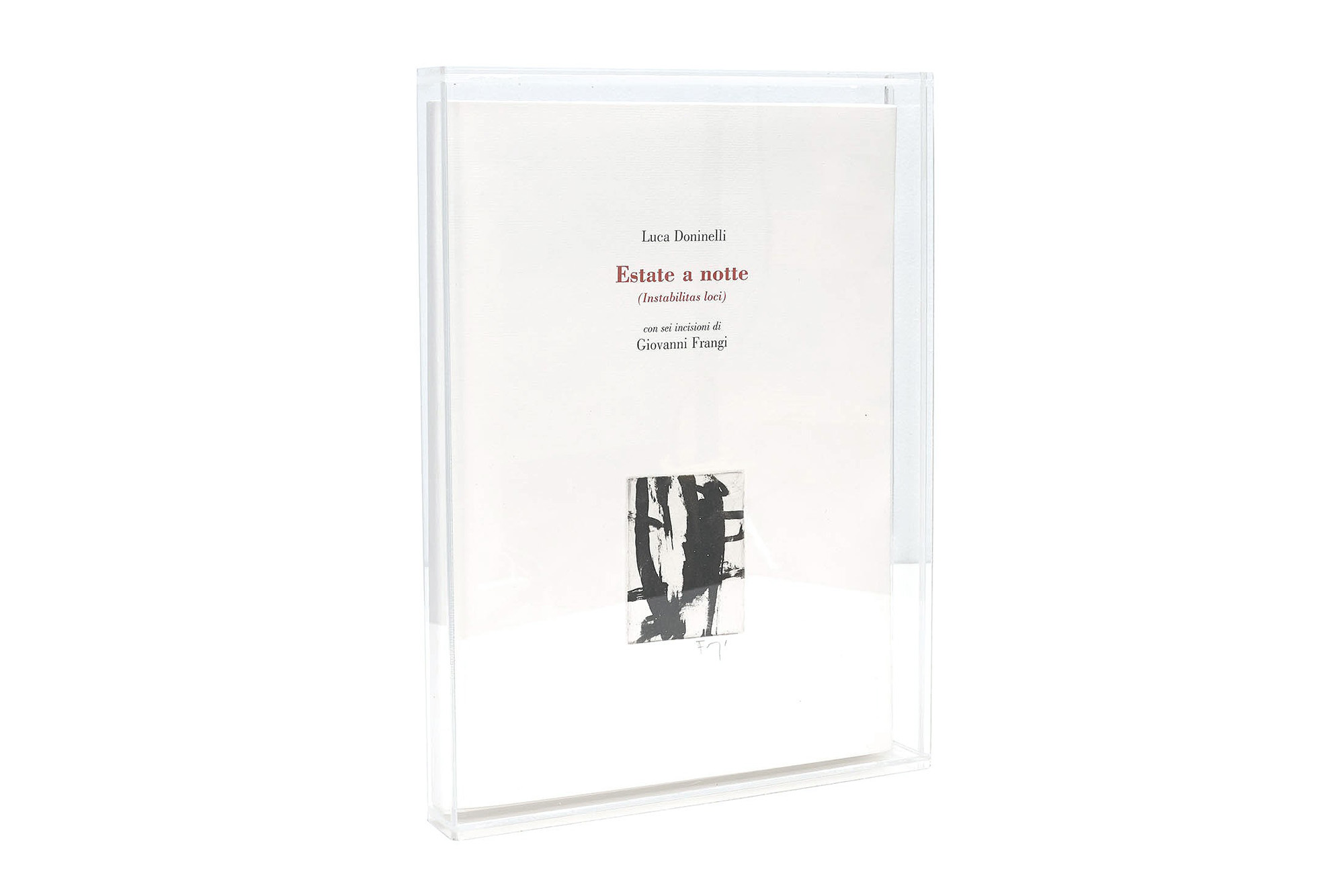 Racconto di Luca Doninelli, Estate a notte ( Instabilitas loci ) con sei incisioni di Giovanni Frangi. L'edizione d'arte è realizzata in esclusiva per REX BUILT- IN su carta "acquaforte"