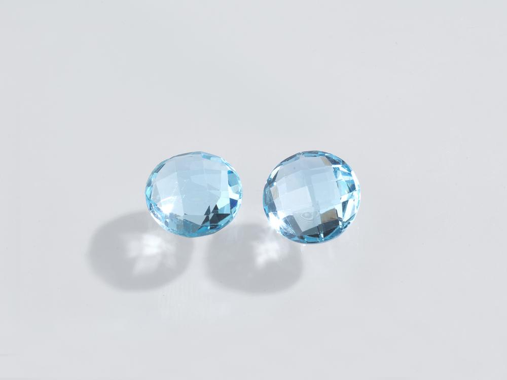 Lotto 34 | COPPIA DI TOPAZI AZZURRI CT 11.15 E CT 11.92 di forma rotonda, taglio misto,...