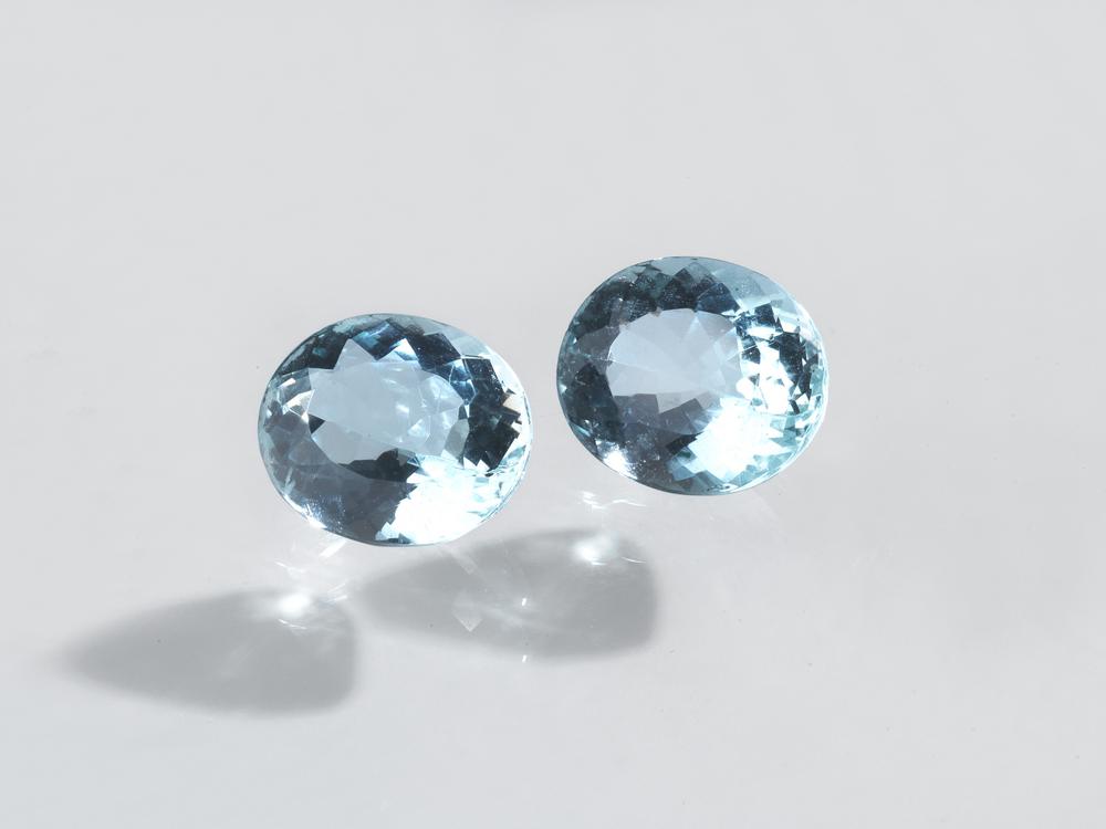COPPIA DI ACQUEMARINE CT 6.84 E 7.50 di forma ovale, taglio composito, mm...