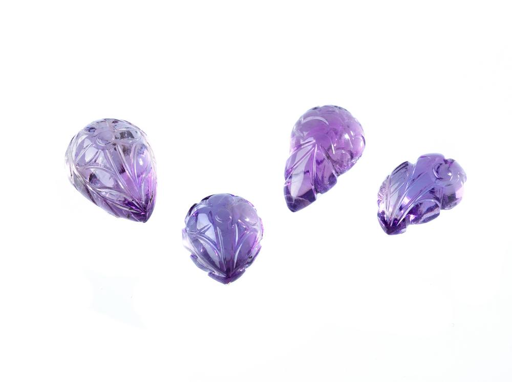 LOTTO DI QUATTRO AMETISTE INTAGLIATE PER CT 75.17 di forma a goccia, mm...