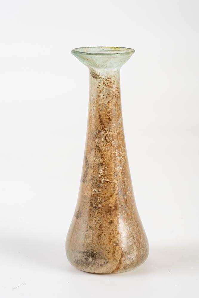 Grande unguentario a bottiglia con labbro svasato, lungo collo troncoconico, fondo piatto
