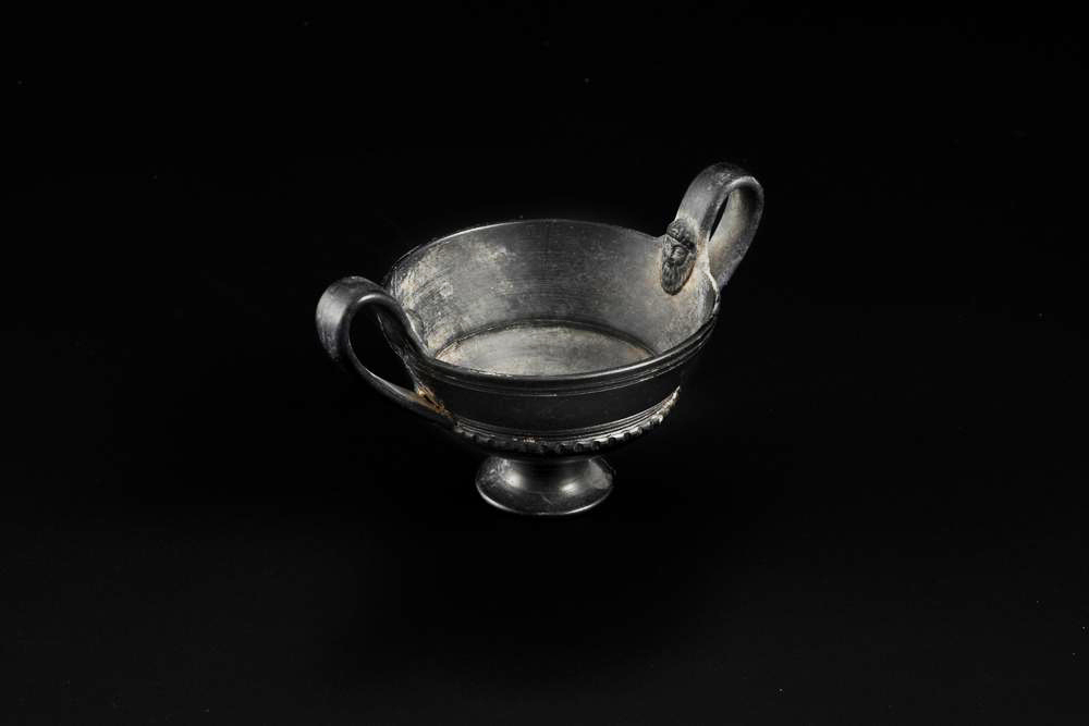 MATERIA E TECNICA: bucchero nero lucidato a stecca, decorazione ad impressione, modellato a tornio veloce