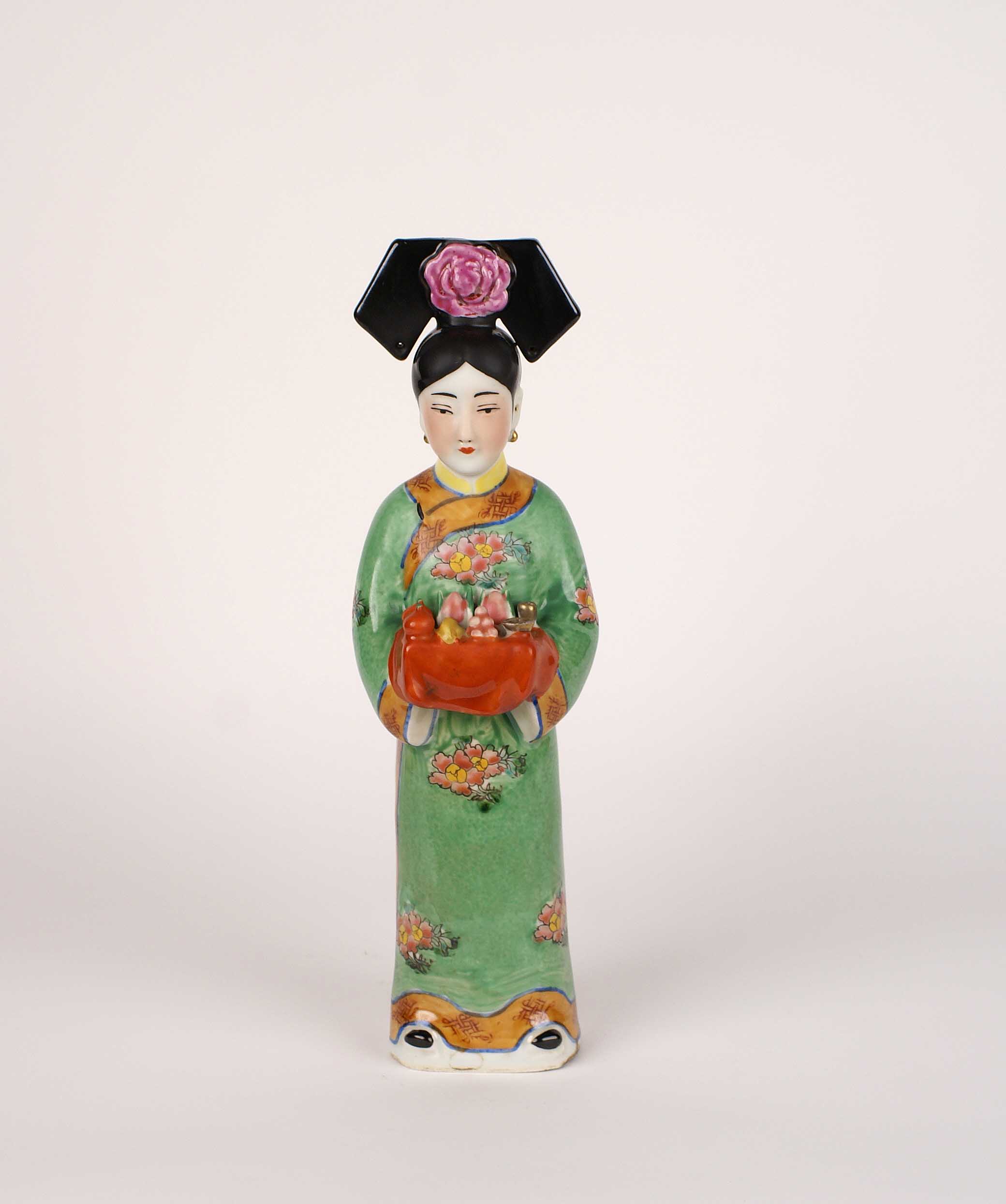 FIGURA FEMMINILE Cina In porcellana dipinta in policromia H. 33 cm.
