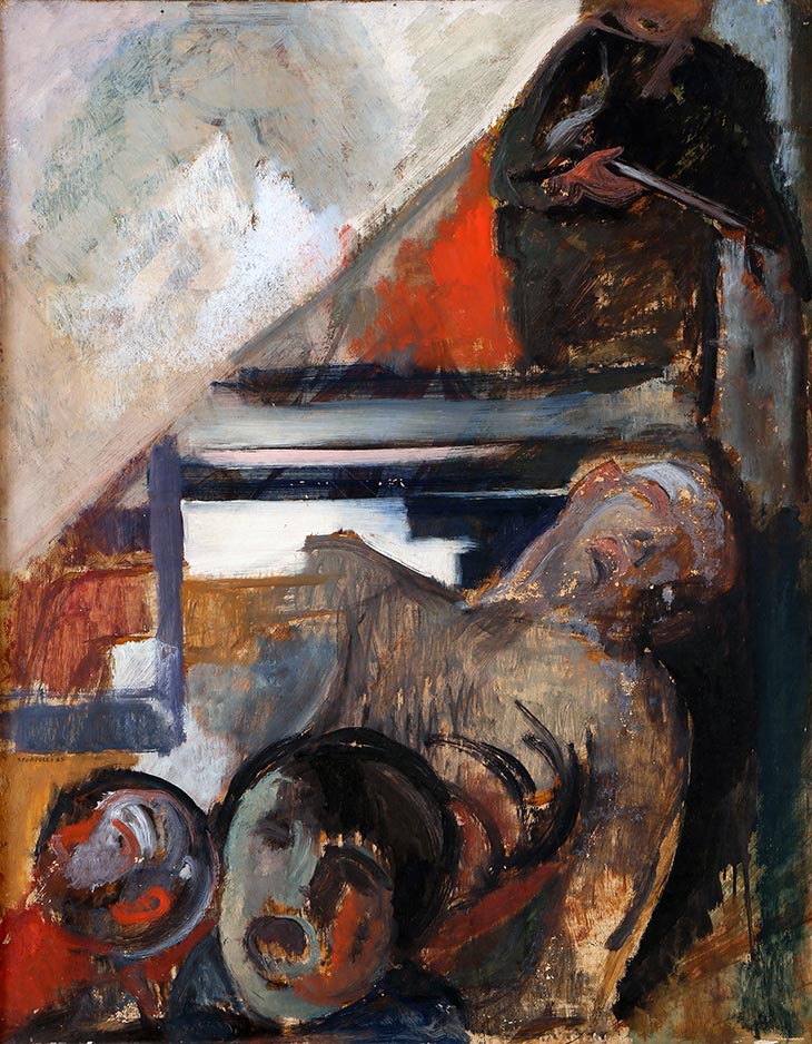 Mario Sportelli Olio su tela 90x70 Volti 1965 Provenienza eredi dell'artista