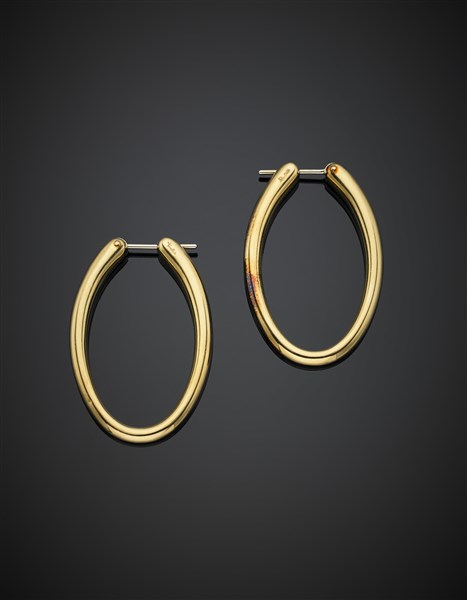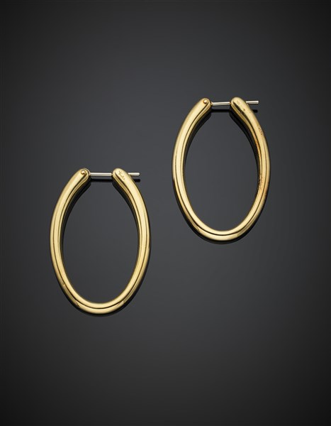 Orecchini in oro giallo ad anella ovale, g 13,41, lungh. cm 4 circa. Firmato e marcato Pomellato, 469 MI.