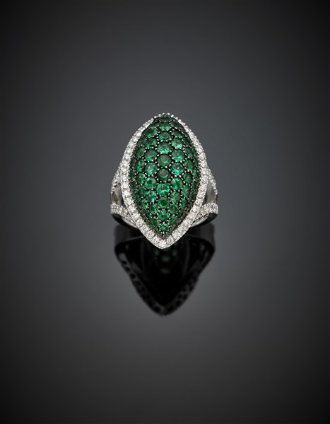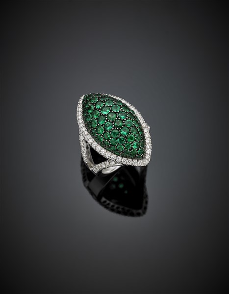 Diamond in all ct. 0.40 circa and green beryl white gold marquise ring, g 17.13 size 14/54. Signed and marked Leo Pizzo, 2041 AL.