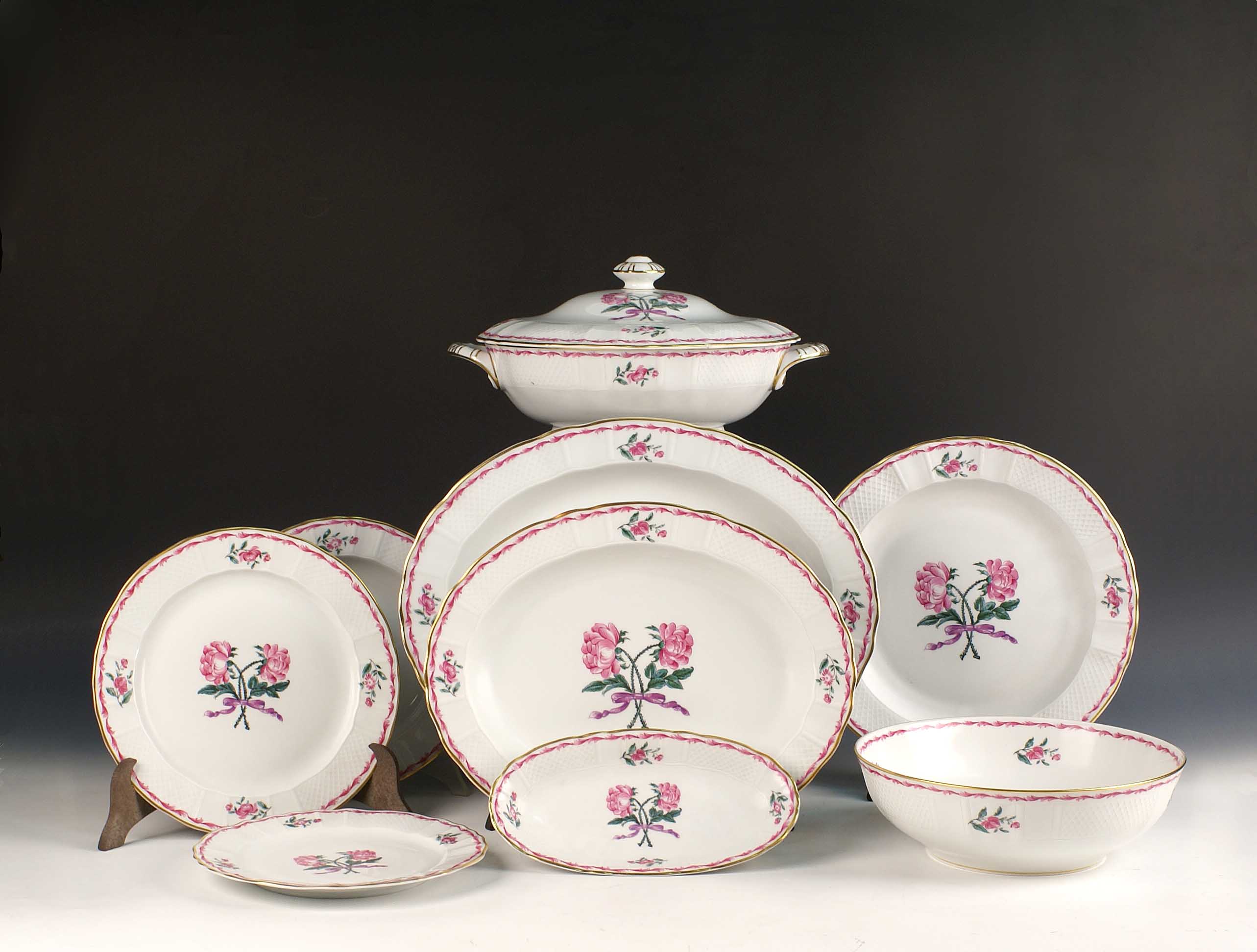 SERVIZIO DI 55 PIATTI "LES DEUX ROSES" Limoges vecchia manifattura In...