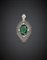 Pendente in oro bianco, quarzo ialino, smeraldo scolpito con profilo di fanciul