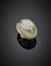 Anello in oro giallo con cupola in quarzo ialino e diamanti a pavé per compless