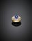 Anello in oro giallo con diamanti tondi e a baguette a contronare uno zaffiro di ct. 1,20 circa, g 8,70 misura 11/51. Firmato e marcati Cartier, 602170. In scatola originale Cartier