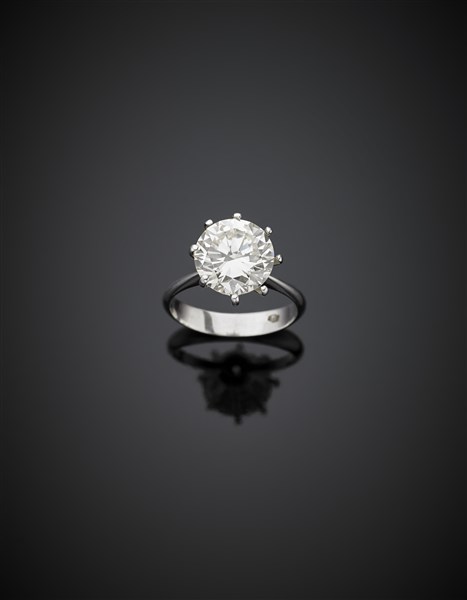 Anello in oro bianco con diamante rotondo di ct. 3,84 g 3,94 misura 13/53.