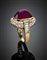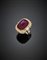 CARTIER Anello in oro giallo con rubino sugar loaf di ct. 25 circa e diamanti p