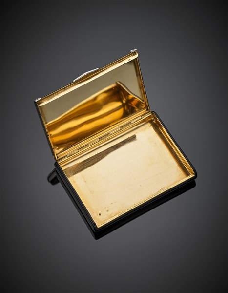 CARTIER Scatola in oro giallo e onice, dettagli in platino e diamanti, g 121,09