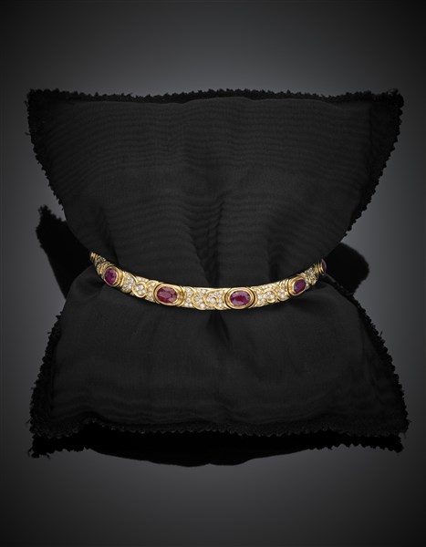MARINA BULGARI Collier de chien in oro giallo, rubini ovali e diamanti rotondi