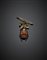Yellow 18K gold safety pin holding a 9K gold and enamel ladybug pendant, orange stone accenting, g 12.91, length cm 4.30 circa. (defects)