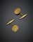 Gemelli in oro giallo 333/1000 e 750/1000 rifiniti con diamanti, inciso un cardo, g 5,55, diam. cm 1,50.