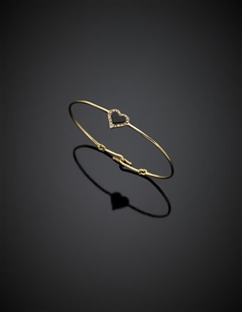Yellow gold wire bangle with onyx and diamond heart central, g 5.19, diam. cm 5.80.
