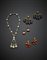 Lotto composto da tre paia di orecchini ed un bracciale in oro, smalto, perla, coralli e granati, complessivi g 42,07. (difetti)