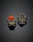 Lotto di due anelli in oro giallo, uno con corallo rosso e l'altro con zaffiro