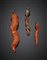 Tre pendenti in corallo arancione rossastro in parte variegato a forma di corno