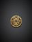 Spilla in oro giallo, rubini sintetici e smalto blu, dettagli in oro bianco, g 16,21, diam. cm 4. (difetti)