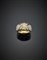 Anello in oro giallo e bianco con motivo a volute rifinito con pietre incolori