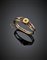 Bracciale rigido apribile in oro rosso 333/1000 con piccole perle e zaffiro, g 14,85, diam. cm 6. (difetti e mancanze)