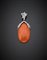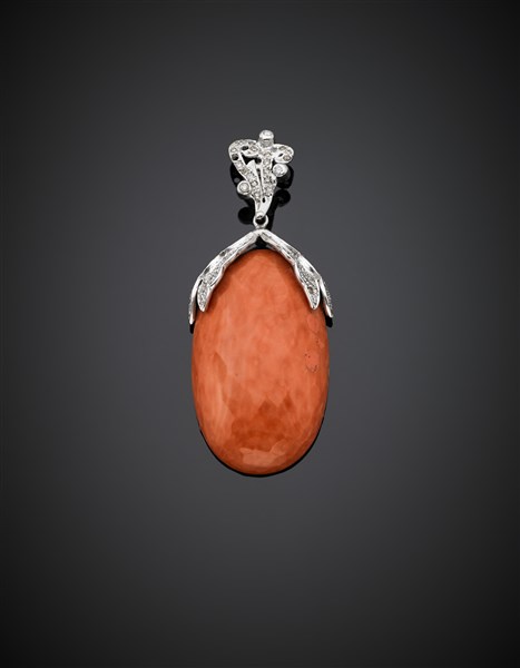 Pendente con corallo arancione sfaccettato, oro bianco e diamanti, g 17,32, lun
