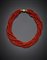 Collana torchon a sette fili a boules di corallo rosso di mm 4.00/4.50 circa con chiusura a caramella in oro giallo , g 101,07, lungh. cm 50 circa.