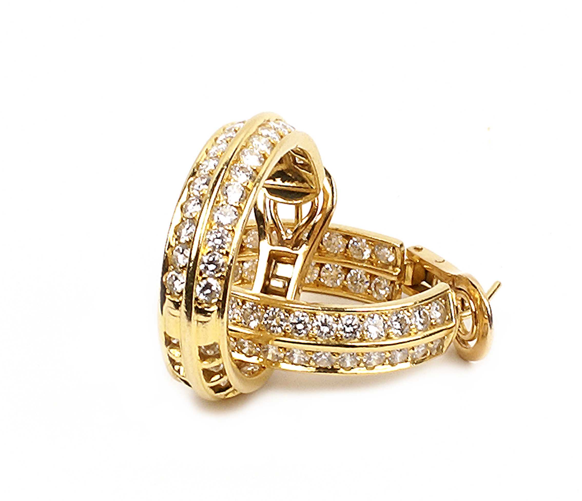 ORECCHINI OVALI IN ORO GIALLO 18KT Con diamanti taglio brillante per carati 3 circa Peso 20 gr.