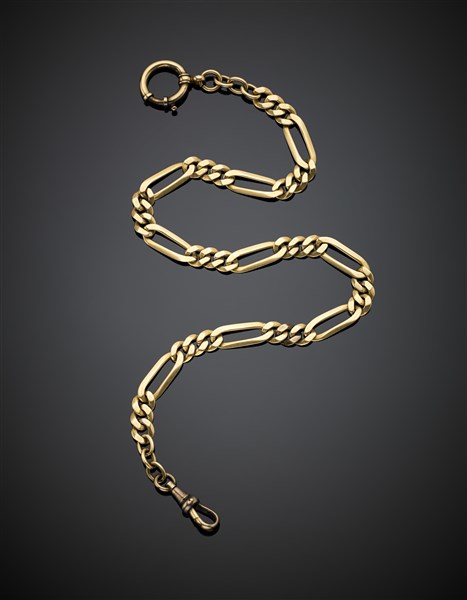 Catena da orologio in oro giallo, g 26,60, lungh. cm 35 circa.