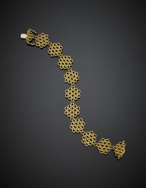 Bracciale in oro giallo modulare con maglia zigrinata g 26,62, lungh. cm 18,30 circa. Marcato 272 VI.