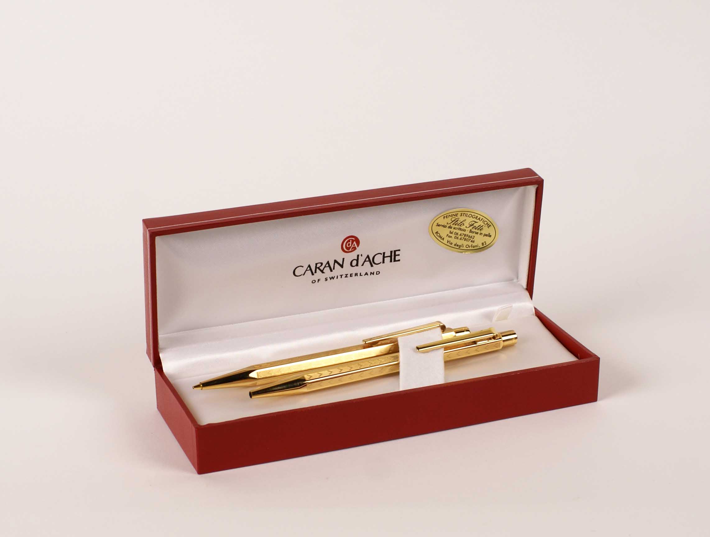CARAN D'ACHE Svizzera Lotto composto da una penna a sfera e da un portamine laminati in oro nuove con scatole