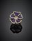 Anello in oro giallo e argento a guisa di fiore con ametiste e diamanti per com
