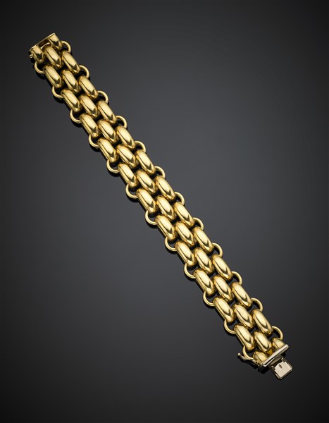 Bracciale in oro giallo a maglia modulare, g 45,23, lungh. cm 18,50, h cm 2 cir
