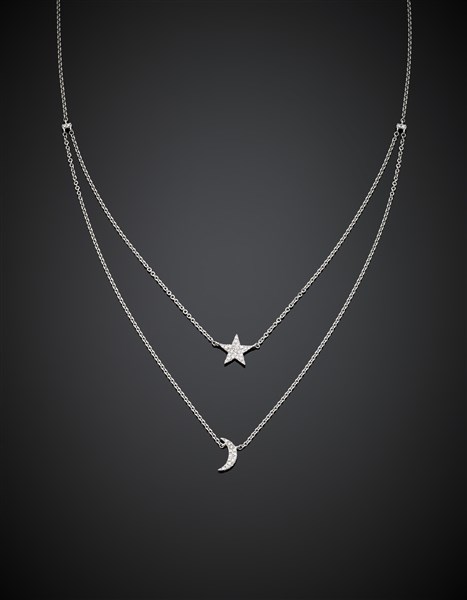 Collier in oro bianco con centrali a guisa di stella e luna rifiniti in diamant