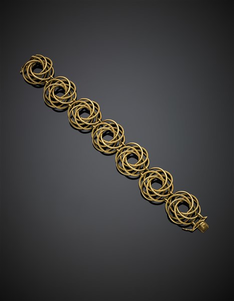 IL GIOIELLO Bracciale modulare a cerchi in oro giallo in parte lavorato, g 73,1