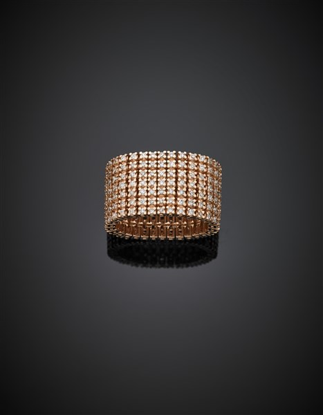 Anello eternity morbido in oro rosa e diamanti per complessivi ct. 2 circa, g 13,50 misura 13/53.