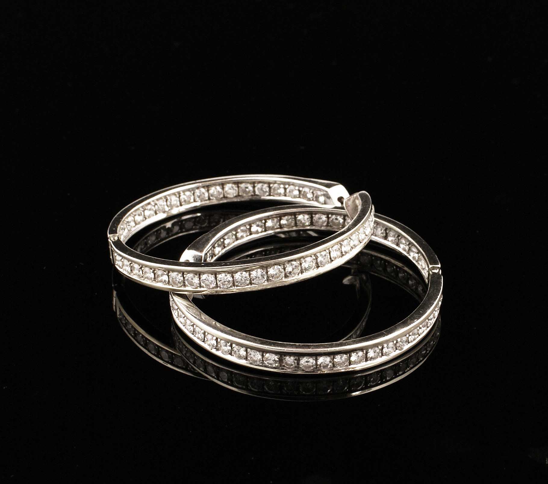 ORECCHINI A CERCHIO IN ORO BIANCO 18KT E DIAMANTI Taglio brillante per carati 3,5 circa Peso 27,3 gr.