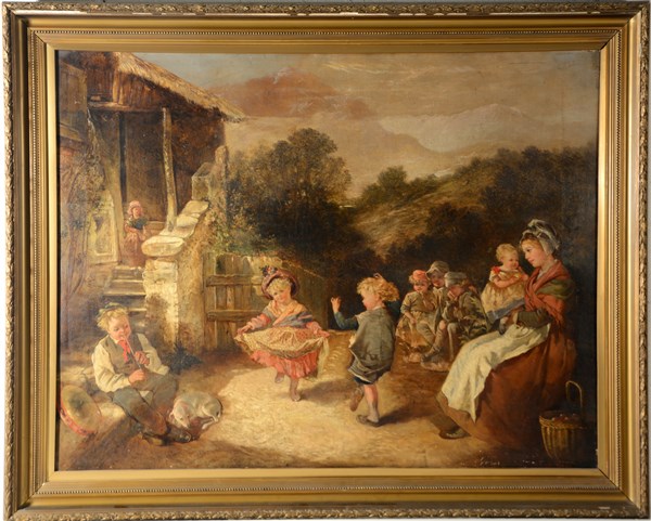 "Fanciulli in un paesaggio" olio su tela (cm 70x90) Firmato in basso a destra. In cornice (difetti)